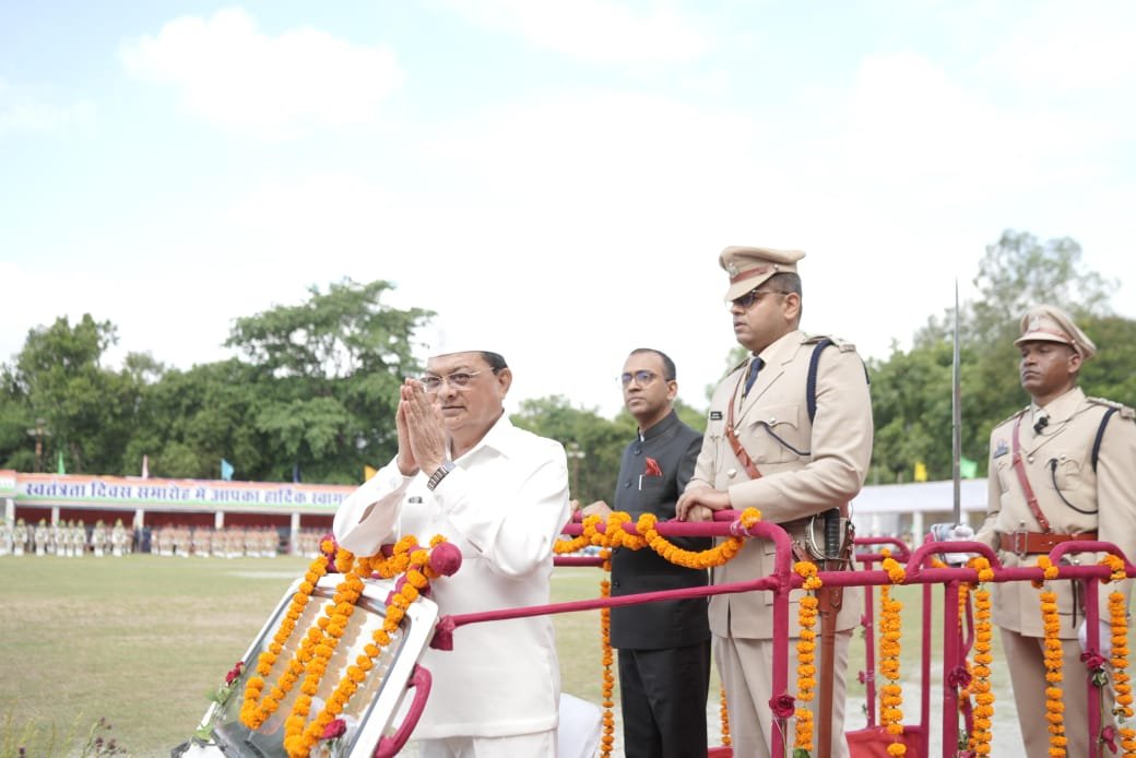 उद्योग मंत्री श्री लखनलाल देवांगन ने ध्वजारोहण कर परेड की सलामी ली
