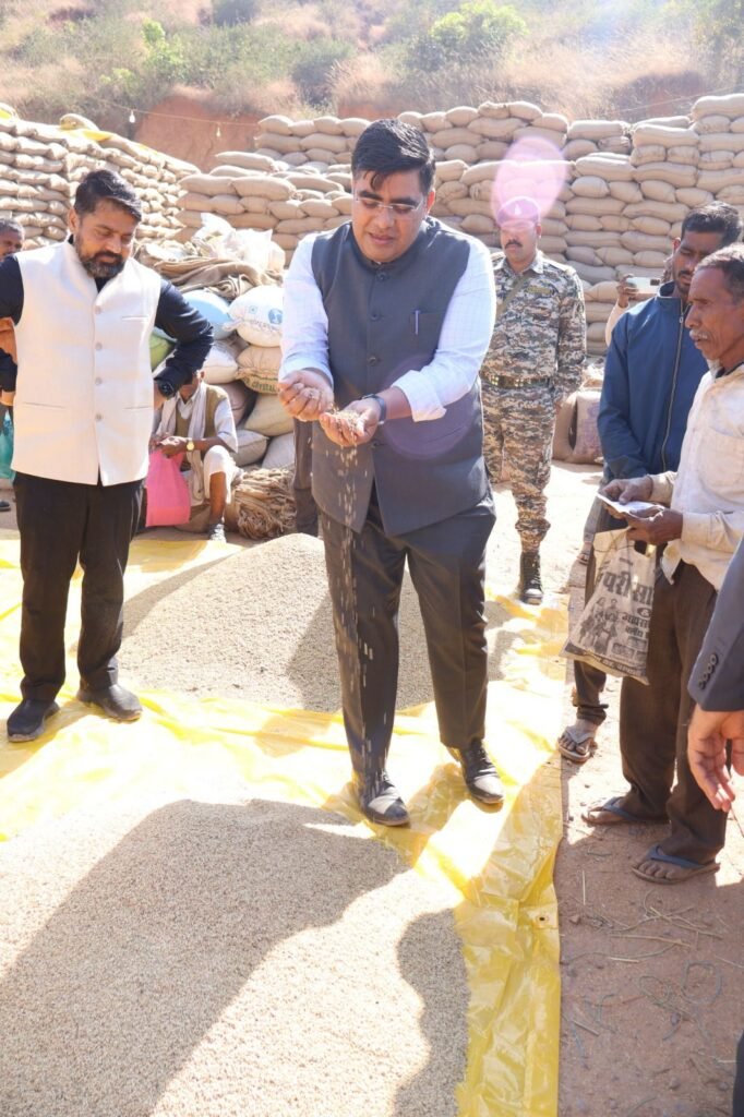 कलेक्टर श्री कुणाल दुदावत ने आज खरीफ विपणन वर्ष 2025-26 के अंतर्गत कोरबा विकासखंड के ग्राम बरपाली स्थित धान उपार्जन केंद्र का औचक निरीक्षण किया। उन्होंने केंद्र में पहुंचे किसानों के धान की नमी और गुणवत्ता को स्वयं परखकर खरीदी की स्थिति का जायजा लिया। निरीक्षण के दौरान उन्होंने किसानों से केंद्र में उपलब्ध सुविधाओं और व्यवस्थाओं के बारे में जानकारी ली।
