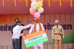 स्वास्थ्य मंत्री श्री श्याम बिहारी जायसवाल ने राष्ट्रीय ध्वज फहराया और परेड की सलामी ली