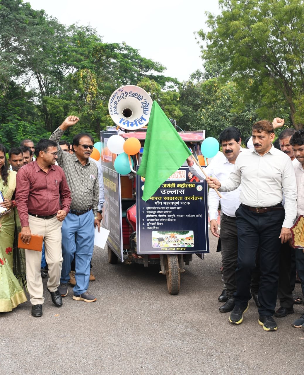 कलेक्टर श्री गोपाल वर्मा ने इस अवसर पर साक्षरता रथ को हरी झंडी दिखाकर रवाना किया इस अवसर पर जिला शिक्षा अधिकारी श्री एफ आर वर्मा, जिला परियोजना अधिकारी श्री देवराज सिंह , जिला नोडल अधिकारी श्री अवधेश नंदन श्रीवास्तव, विकासखंड परियोजना अधिकारी श्री शत्रुघ्न प्रसाद डड़सेना , श्री अजय चंद्रवंशी सहित सम्मान प्राप्त करने वाले प्रतिभागीगण एवं ब्लॉक तथा जिले के कर्मचारी गण उपस्थित थे। कार्यक्रम का संचालन एवं आभार प्रदर्शन जिला नोडल अधिकारी श्री अवधेश नंदन श्रीवास्तव ने किया।